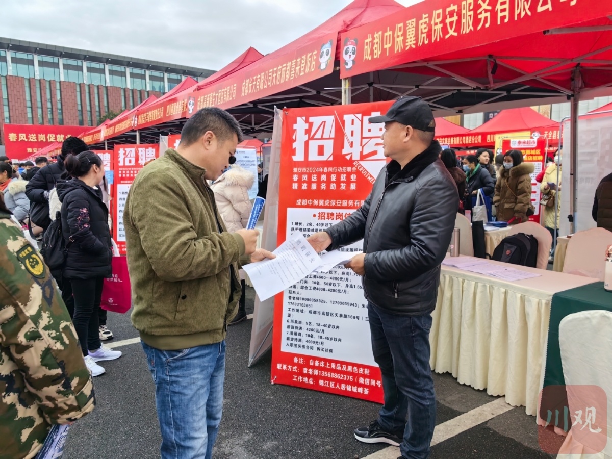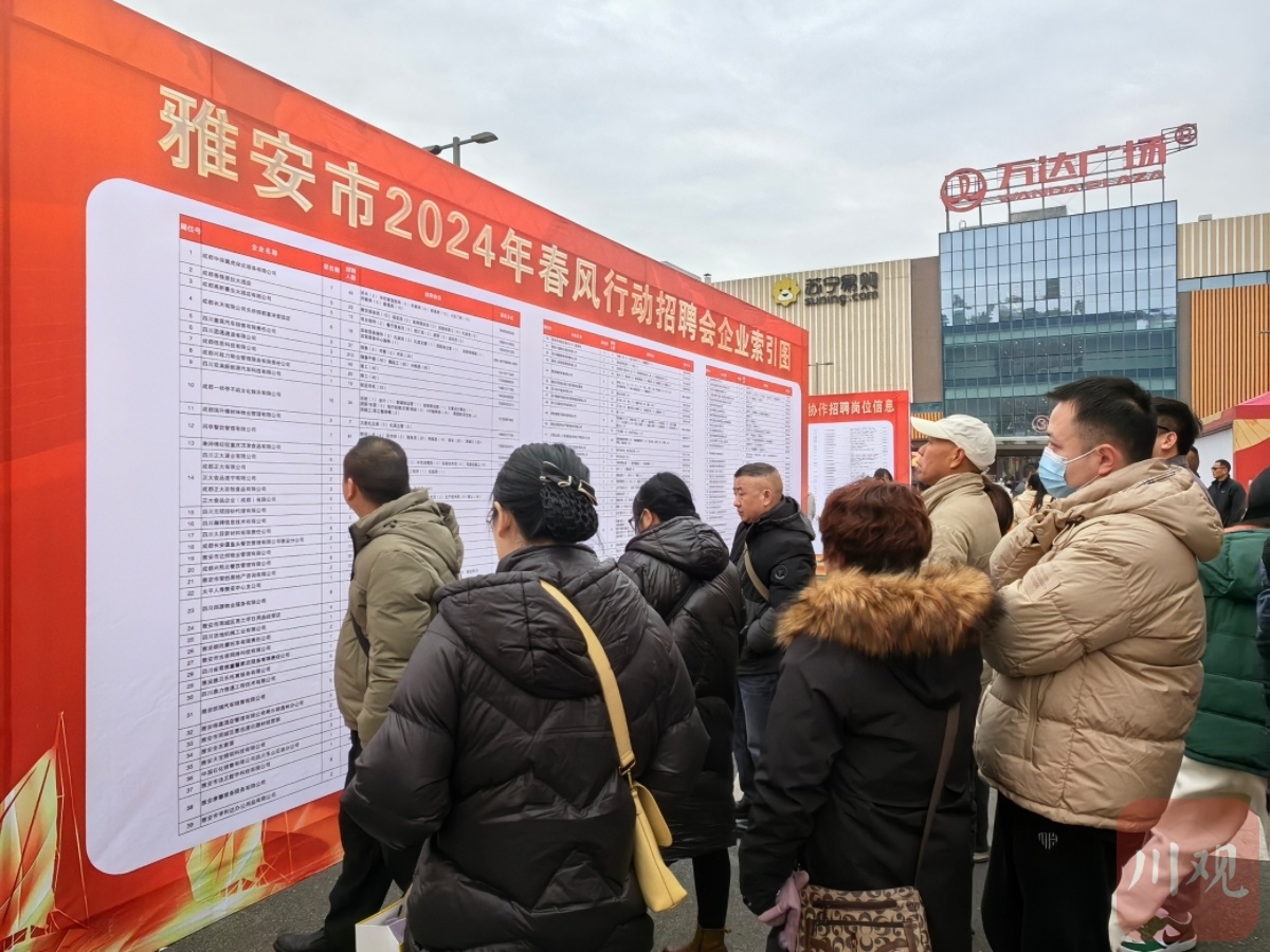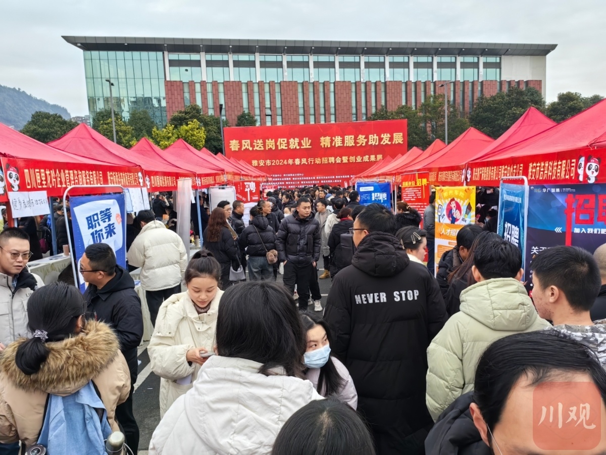 2月23日,以“春风送岗促就业·精准服务助发展”为主题的雅安市春风行动招聘会暨创业成果展在雅安万达广场举行。现场共提供岗位8000余个,涵盖建筑、零售、餐饮等多个行业。