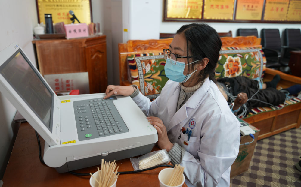 1月24日,西藏大学医学院的研究生给患者检查身体。新华社记者 晋美多吉 摄