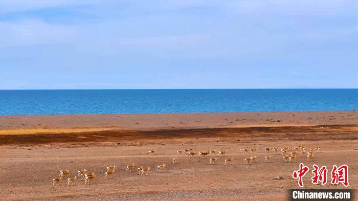 图为大群普氏原羚在青海湖畔游走。桑吉才让 摄