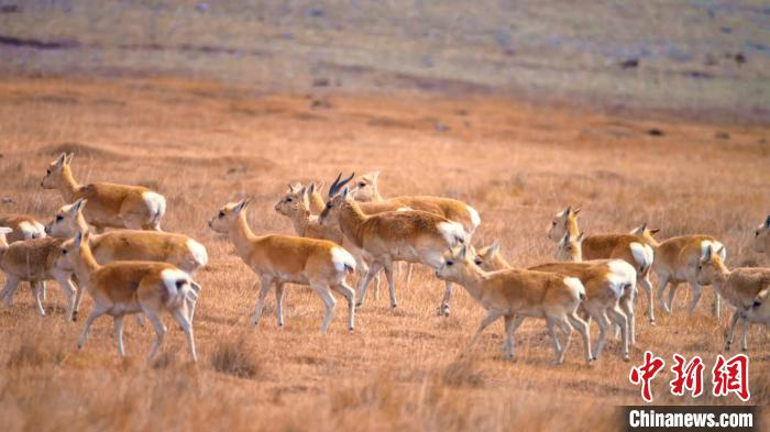 图为成群普氏原羚在草原上觅食。才新木加 摄