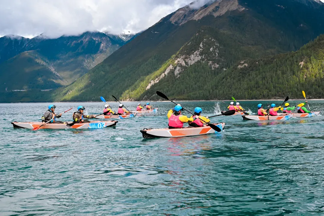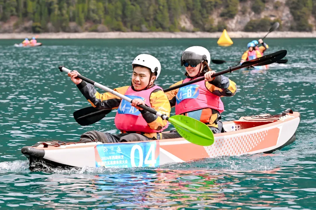 4月20日上午, 2024年西藏林芝南迦巴瓦高原体育大会巴松措国际漂流公开赛在美丽的巴松措湖畔拉开帷幕。本次赛事是西藏首次举办的国际级水上运动赛事,标志着环喜马拉雅和青藏高原区域体育赛事掀开新的篇章。