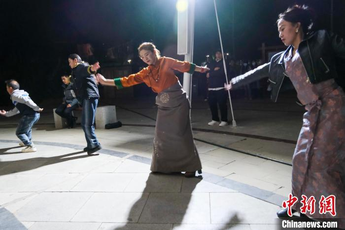 中新社拉萨4月27日电 题:夜间锅庄舞让西藏青年收获快乐