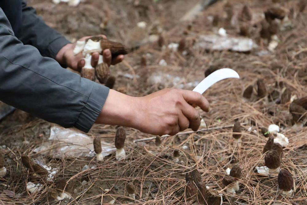4月15日,工作人员在采摘羊肚菌。(昆明海关供图)