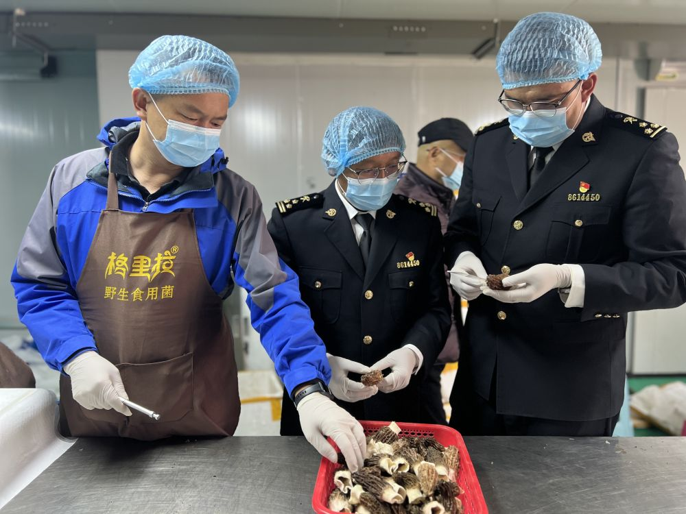 4月22日,海关官员对羊肚菌进行出口前检验检疫。(昆明海关供图)