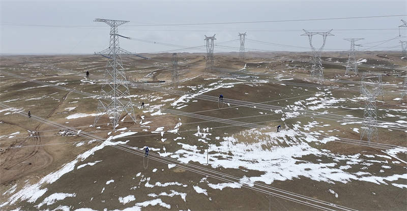 国网青海省电力公司输电专业人员走线验收新建750千伏红旗输变电工程线路。国网青海超高压公司供图