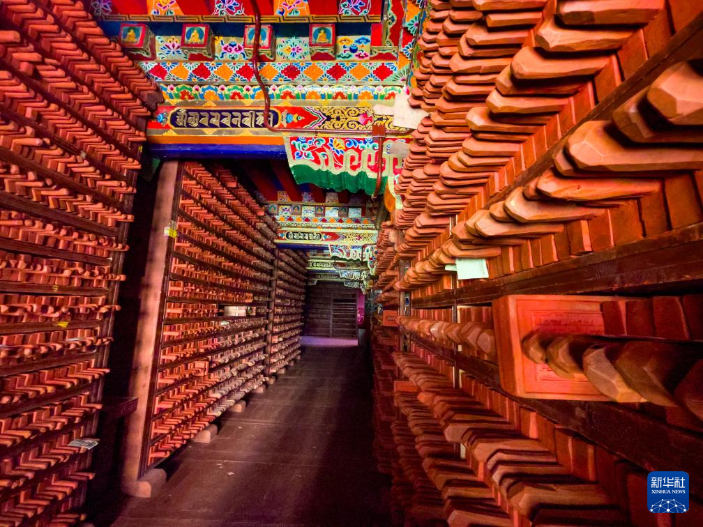 在四川省甘孜藏族自治州德格县拍摄的德格印经院院藏雕版(2021年10月3日摄)。 新华社记者 沈伯韩 摄