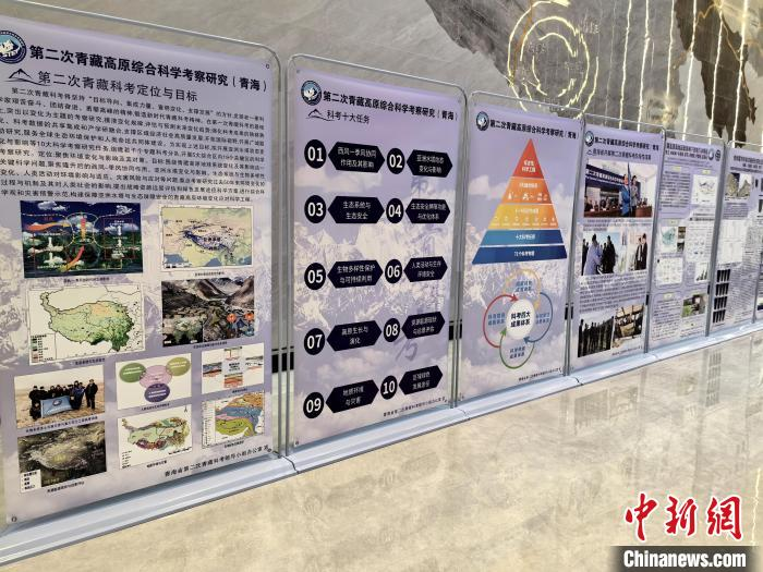 图为第二次青藏科考成果助推青海交通高质量发展对接会场外展板,展示科考项目。 祁增蓓摄