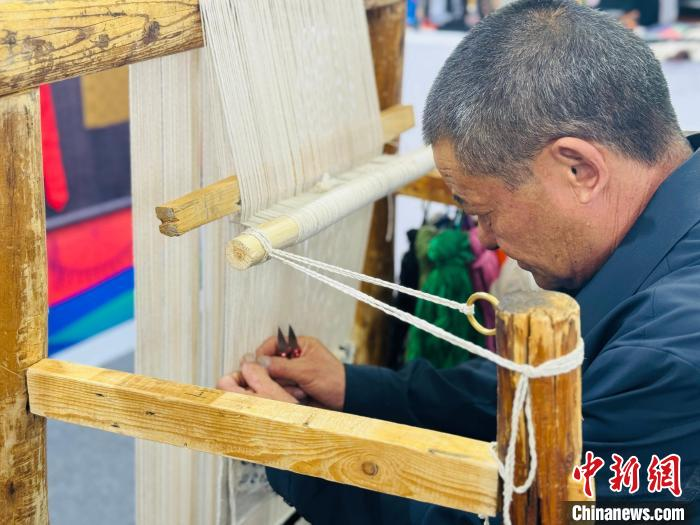 图为国家乡村工匠名师现场编织藏毯。中新网记者 孙睿 摄