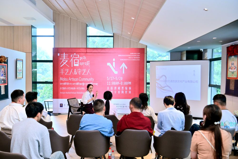 据介绍,本次“麦宿市集”主要展示了15种传统手工艺,包括利玛铜铜铸、唐卡、黑陶、娜叶编织、木雕、金银掐丝、藏纸、藏香、牦牛尾编织 、芫根干制作、金银加工、金属锻造、缝纫、皮革和藏医。包括四川省省级和甘孜州州级非遗传承人以及长期从事传统手工艺制作的匠人共17人集中亮相,他们之中既有历代从事传统手工艺家族的传承人,也有返乡创业大学毕业生。