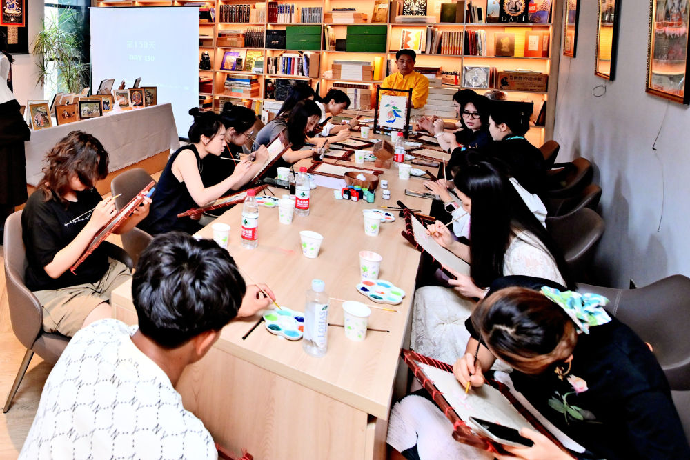 人们在参加唐卡绘制手艺体验课。受访者供图