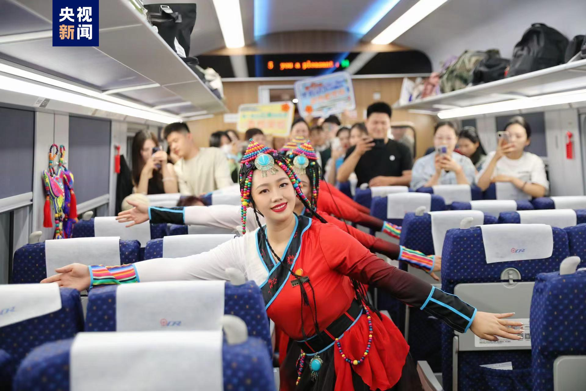 列车上采用藏族独有的格桑花图案定制列车台布、靠枕套等,打造“扎西食集”主题餐吧;还提供“汉、藏、英”三语广播、藏文点餐牌,方便藏区人民出行;配有血氧仪,方便有需要的旅客检测使用,让旅客一上车就能感受到雪域高原的独特美景。
