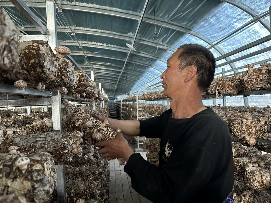这是位于甘肃省武威市天祝藏族自治县松山镇的食用菌大棚一景(5月21日摄)。新华社记者 张文静 摄