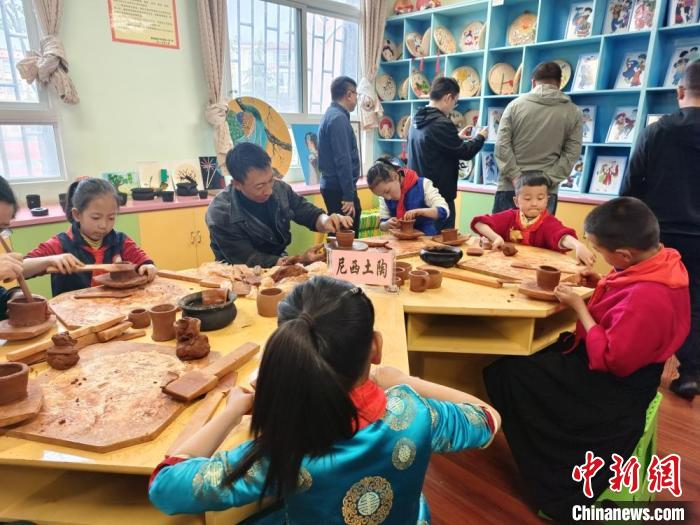 图为学生学习尼西黑陶制作。中新网记者 韩帅南 摄