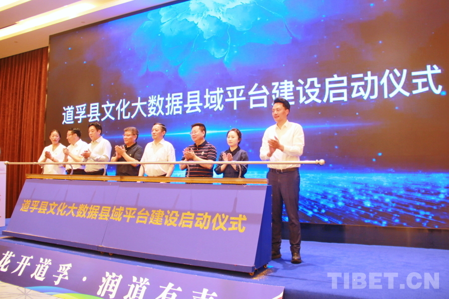 图为“花开道孚 润道有声”道孚县文化传承发展座谈会上举行了道孚县文化大数据县域平台建设启动仪式 摄影:刘莉