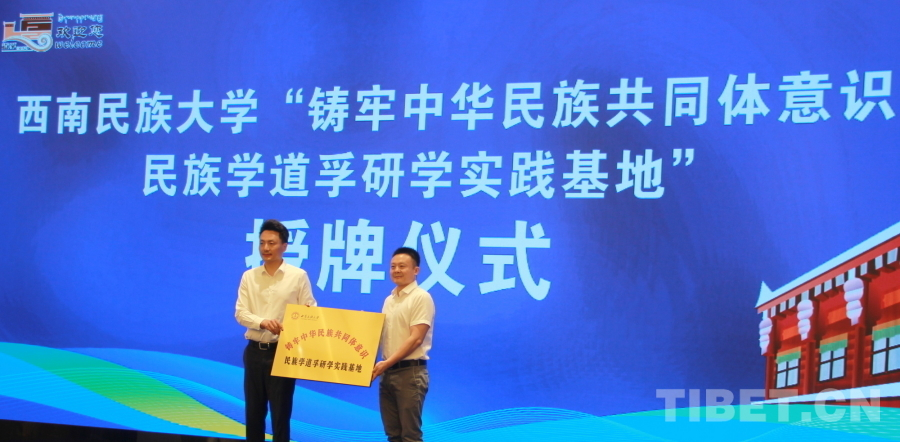 图为在“花开道孚 润道有声”道孚县文化传承发展座谈会上举行“铸牢中华民族共同体意识民族学道孚研学实践基地”授牌仪式 摄影:刘莉