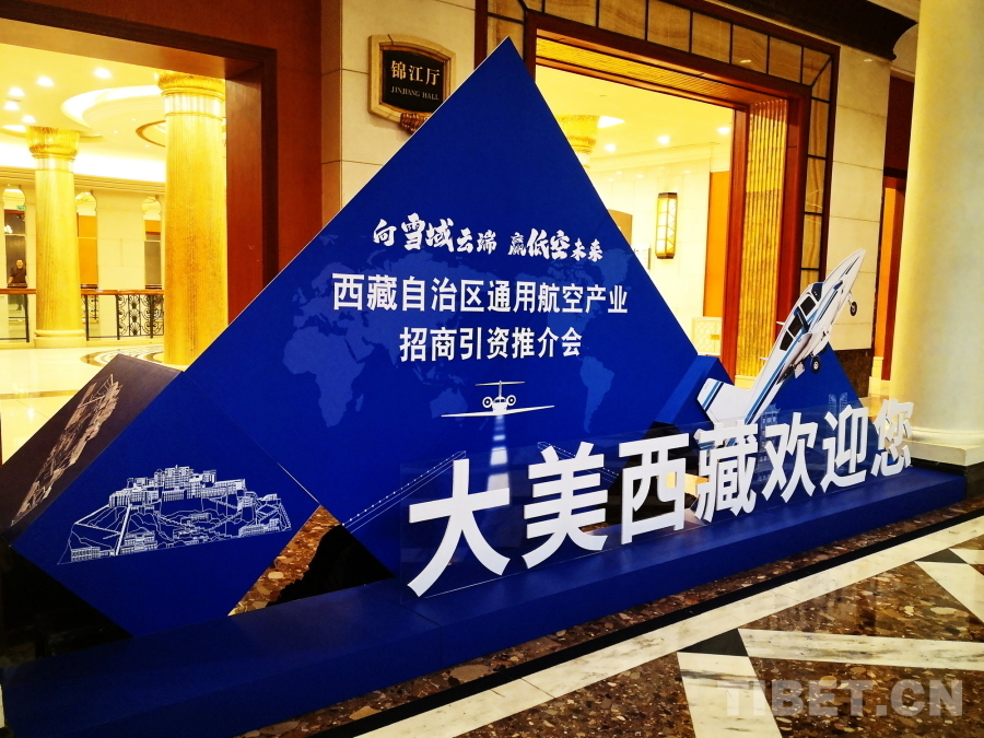 图为西藏自治区通用航空产业招商引资推介会现场设置的展板 摄影:刘莉