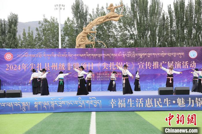 中新网青海尖扎6月28日电 (记者 胡贵龙张添福)“神宝神山巍峨,黄河潋滟万里。善良淳朴儿女,欢聚喜乐家园……”这是《尖扎锅庄舞》的一段歌词。