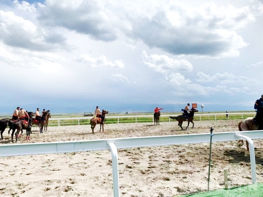 7月8日上午,第十二届全国少数民族传统体育运动会马上项目在新疆维吾尔自治区伊犁哈萨克自治州昭苏县开赛。马上角力又叫马上摔跤,是少数民族传统马上运动项目之一,是力量与技巧的较量。通过双方在马上激烈角逐,以竞赛者的骑术和勇敢分胜负,观赏性极高,同时这项运动有一定的危险性,需要骑手和马匹长年累月进行磨合训练。(中国西藏网 图文/陈濛濛 杨眉笑)