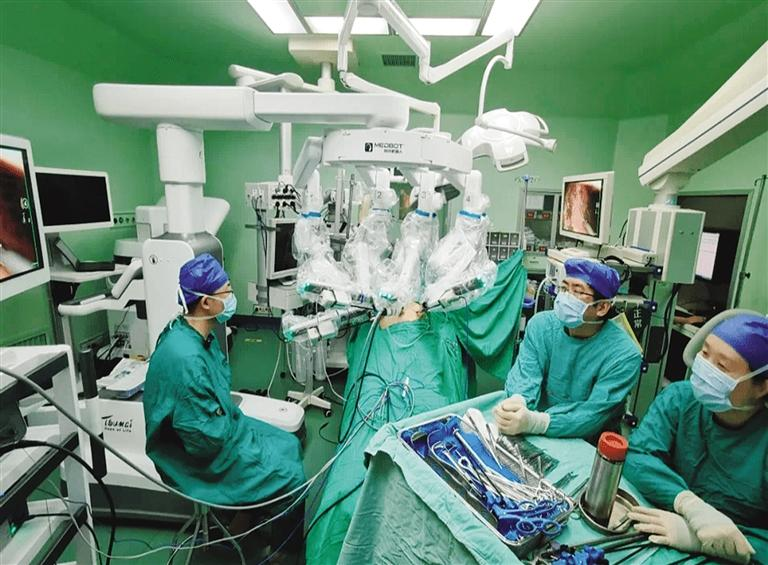 通过中国电信5G网络的技术加持,甘肃省人民医院普外科马云涛主任团队顺利完成全国首例双向5G远程国产机器人全胃切除术,并完成全镜下的SPLT-Overlap+Roux-en-Y(自牵引后离断+空肠-食管)吻合。由中国的外科医生采用中国自主研发的5G通讯技术和图迈机器人手术系统,实现了双向5G互联远程机器人胃肠手术的再突破。