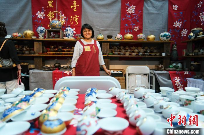 8月7日,拉萨进口商品展览会现场,台湾陶艺师白芃絪在自己的展位上。中新社记者 江飞波 摄
