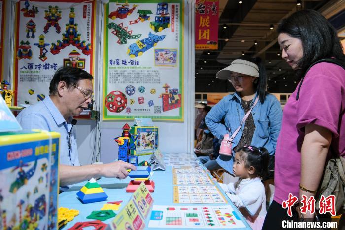 此次展会现场还有益智教具展位。台湾博士儿实业有限公司总经理叶国义现场操作一些三角形、正方形积木变形成各种立体的形状。他介绍,公司主要经营数学教具,将各种数学基本原理融入积木设计中,致力于儿童和青少年的数理概念潜能开发。
