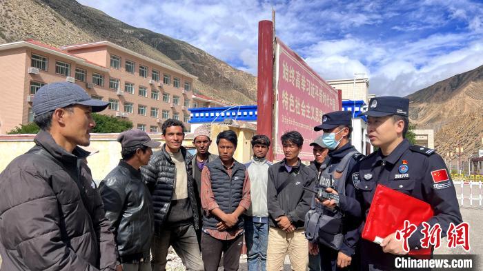 图为普兰边检民警向中尼边民普及防灾防汛知识。钟悦祺 摄