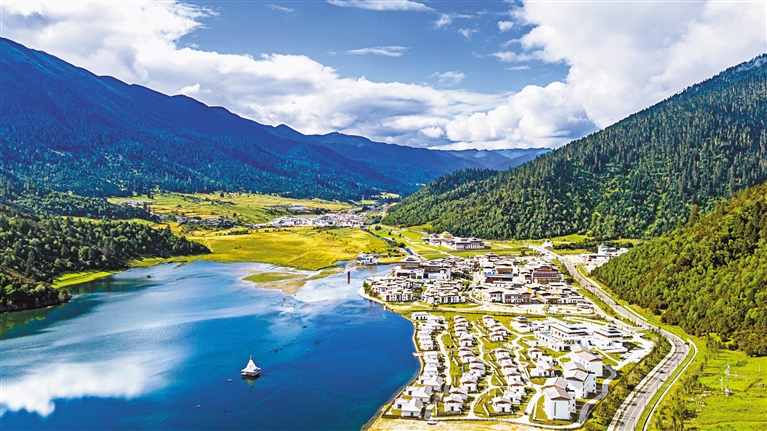 图为广东省对口支援建设的林芝市巴宜区鲁朗国际旅游小镇。(图片由林芝市鲁朗景区管理委员会提供)