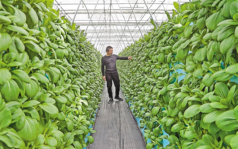 图为那曲市浙江产业援藏精准扶贫示范基地的工作人员查看气雾栽培蔬菜的长势。记者 次旺 摄
