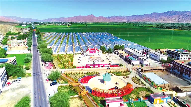 由山东援藏打造的桑珠孜区青稞小镇全景。