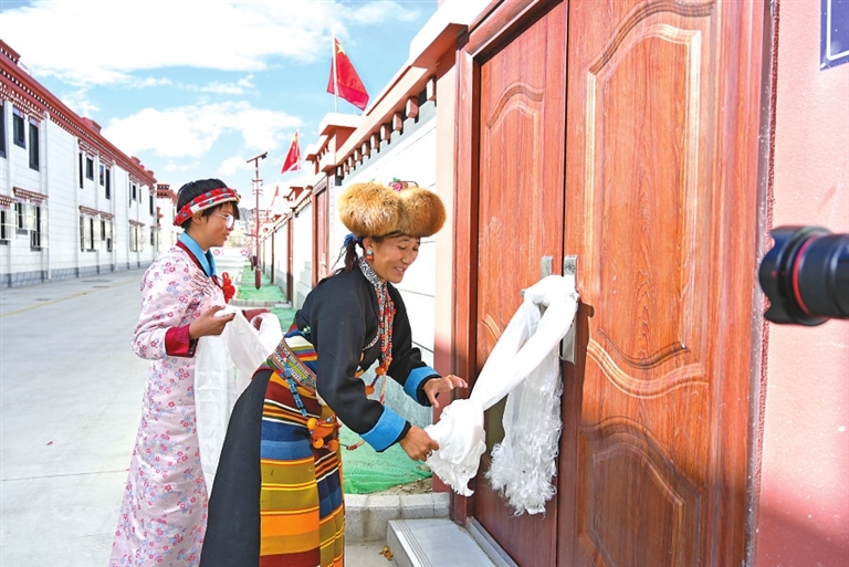 上海援藏重点项目——拉孜县查务乡吉角村集中搬迁暨乡村振兴项目完工并交付,群众入住新家。