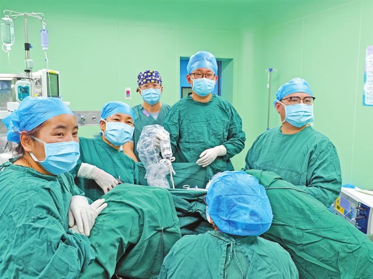 上海援藏医疗队专家、日喀则市人民医院妇科主任隋孟松带领本地妇科医生成功开展全市首例腹腔镜下全子宫切除术。