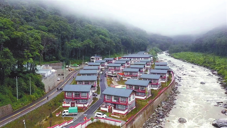 上海对口援建的边境小康示范村亚东县庞达村全景。