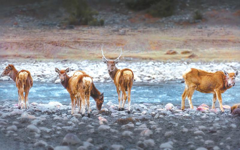 白唇鹿群。杨溶兵 摄