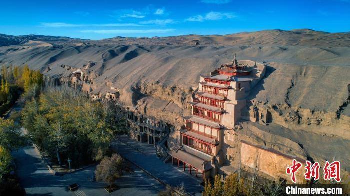 图为敦煌莫高窟标志性建筑“九层楼”。(资料图)敦煌研究院供图