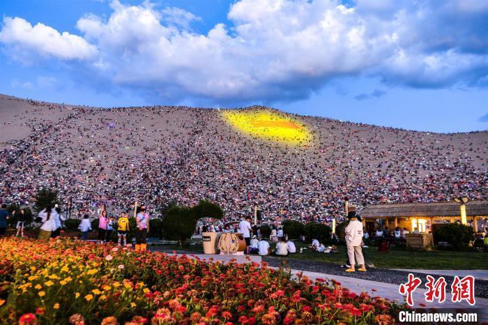 2024年7月28日,敦煌鸣沙山上,上万名游客静待万人星空演唱会开幕。王斌银 摄