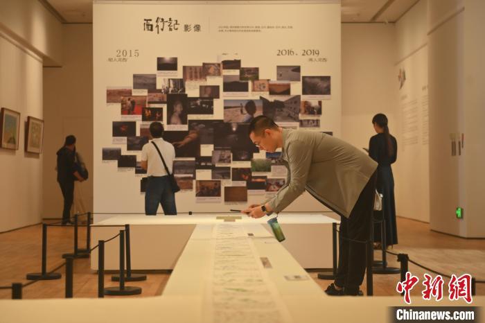 2024年9月28日,“西行记——老树画展”现场,观众前来拍照打卡。李亚龙 摄