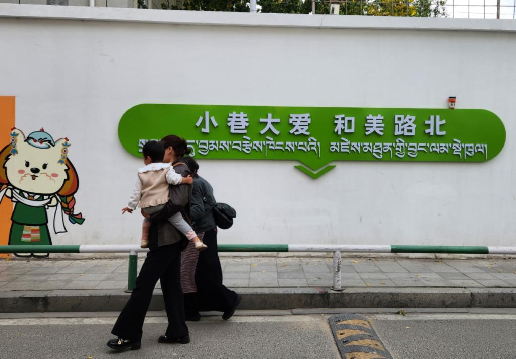 配合路政部门把洽玛岗路改为单行道,让街道静下来;协同三大运营商,把街上纵横交错的“飞线”收进沿街桥架,还行人一片蓝天;对接专业设计团队,以本地犬种拉萨阿普索犬设计社区IP形象“嘎嘎”(意为快乐),街角的墙绘、树上的引导牌、商户的门脸上都能看到这只可爱的小狗……社工旦增晋美对社区的变化如数家珍。