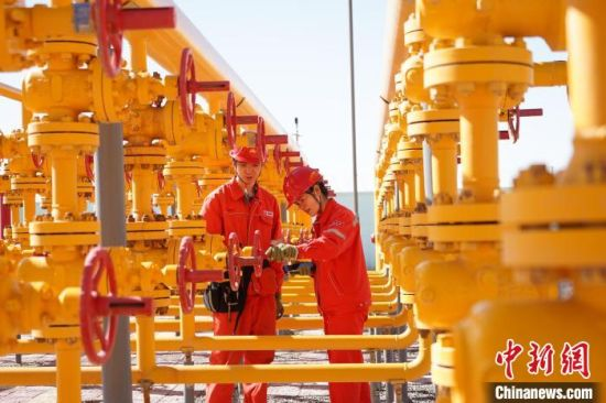 9月25日,涩北气田工作人员进行巡检。中新社记者 马铭言 摄
