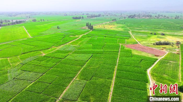 2024年6月18日,航拍下的甘肃省张掖市临泽县新华镇制种玉米田。安学海 摄