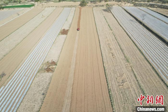 2022年4月18日,甘肃省庆阳市环县天池乡的民众正忙着播种。陈羿舟 摄
