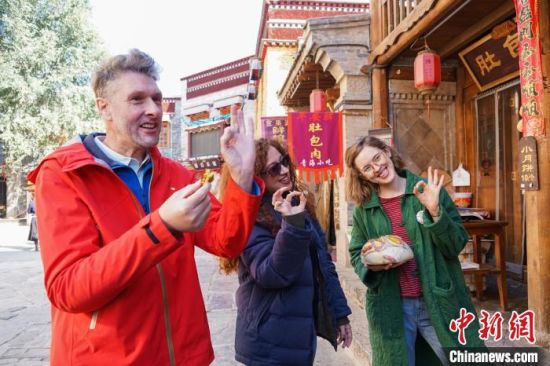 图为外国嘉宾在平安驿品尝特色美食。马铭言 摄