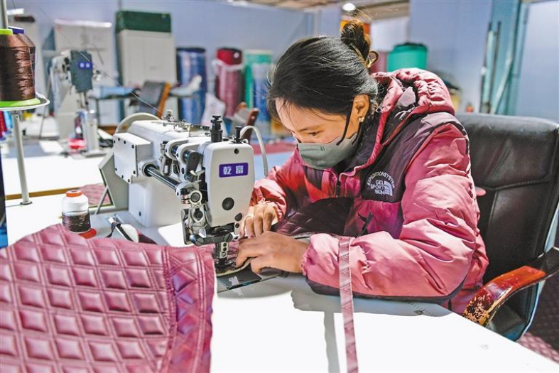 འདི་ནི་རང་སྐྱོང་ལྗོངས་དབང་པོ་སྐྱོན་ཅན་ལས་ཞུགས་ཞབས་ཞུ་ལྟེ་གནས་ཀྱིས་དབང་པོ་སྐྱོན་ཅན་ལ་ཕྱོགས་པའི་གྱོན་གོས་འཚེམ་བཟོའི་ལས་ཞུགས་རྩལ་ནུས་མཛུབ་ཁྲིད་གསོ་སྦྱོང་བྱེད་བཞིན་པ།