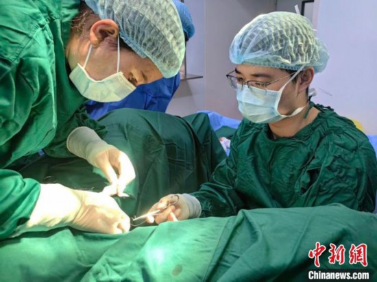 程伟业(右)进行外科手术中。浙江省人民医院供图
