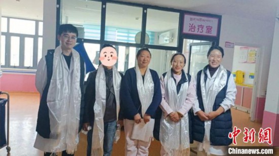 患者家属向程伟业(左一)与医护敬献哈达。浙江省人民医院供图