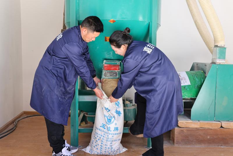 “轰隆轰隆……”伴随着全混合日粮制备机的轰鸣声,夫妇俩又开始了一天的备粮工作。“草料、玉米、麸皮、燕麦、豆粕,这些就是咱们养殖场牦牛的口粮了,收购的牦牛从小在牧场上吃生态牧草、喝冰川雪水,到场里以后,也只能以纯生态的饲料喂养,但凡闻到浓缩饲料的味道它可一口都不会吃。”陈旭江边把粮食放进机器边介绍。