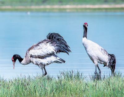 若尔盖湿地的黑颈鹤。贡波泽里 摄