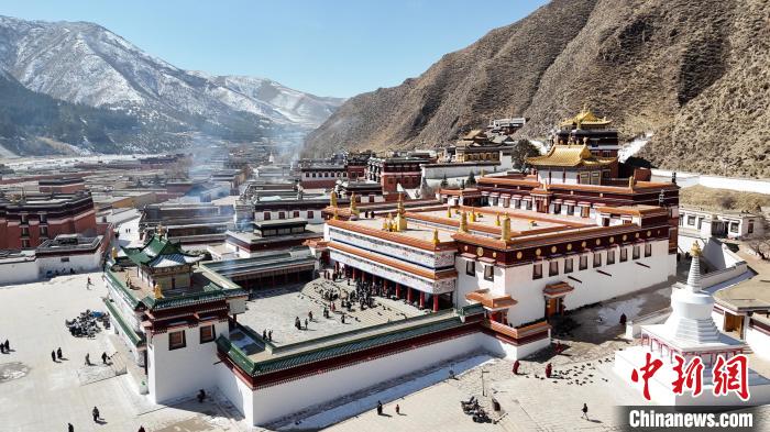 2月28日,航拍“世界藏学府”拉卜楞寺。(无人机照片)九美旦增 摄