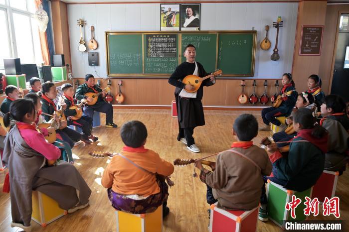 中新社记者近日探访玛曲县寄宿制藏族小学弹唱社团活动,未进教室,已听到室内传出的欢快琴声和笑声。