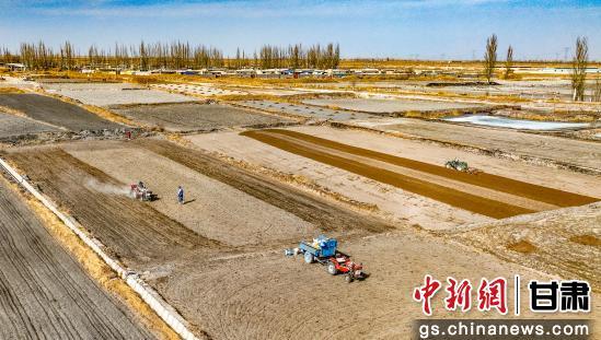 图为嘉峪关市新城镇观蒲村农民播种小麦现场。李巍 摄