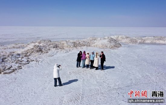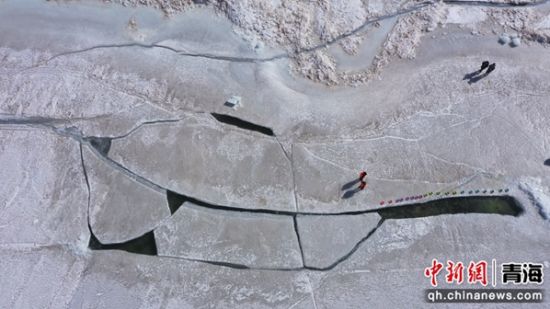 航拍青海湖海晏段冰面开始解冻。 张忠苹摄